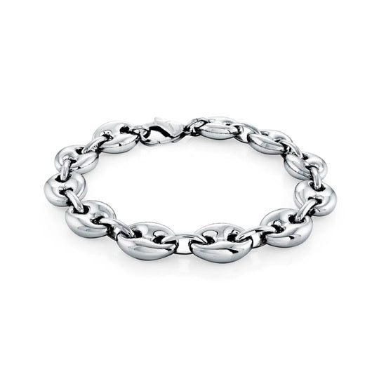 Italgem Steel 8.5" 10MM Hollow Puff Mariner Link Bracelet.