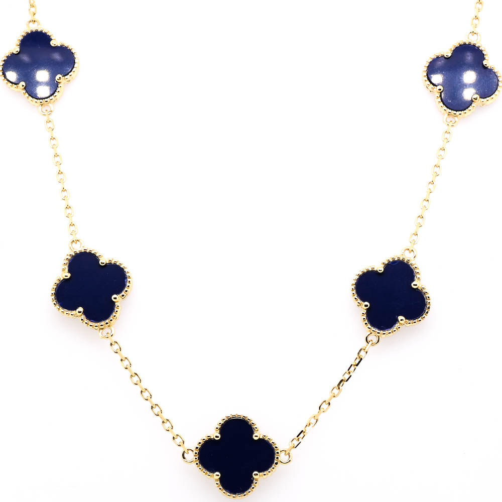 Sterling Siilver 14KT Yellow Gold Plated 24" Lapis Multi Clover Necklace.