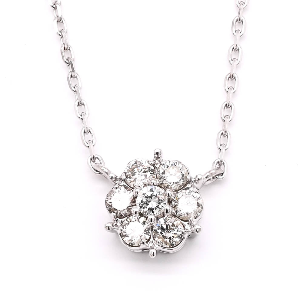 Graziella 14KT White Gold 18" 0.50CTW Diamond Flower Necklace.