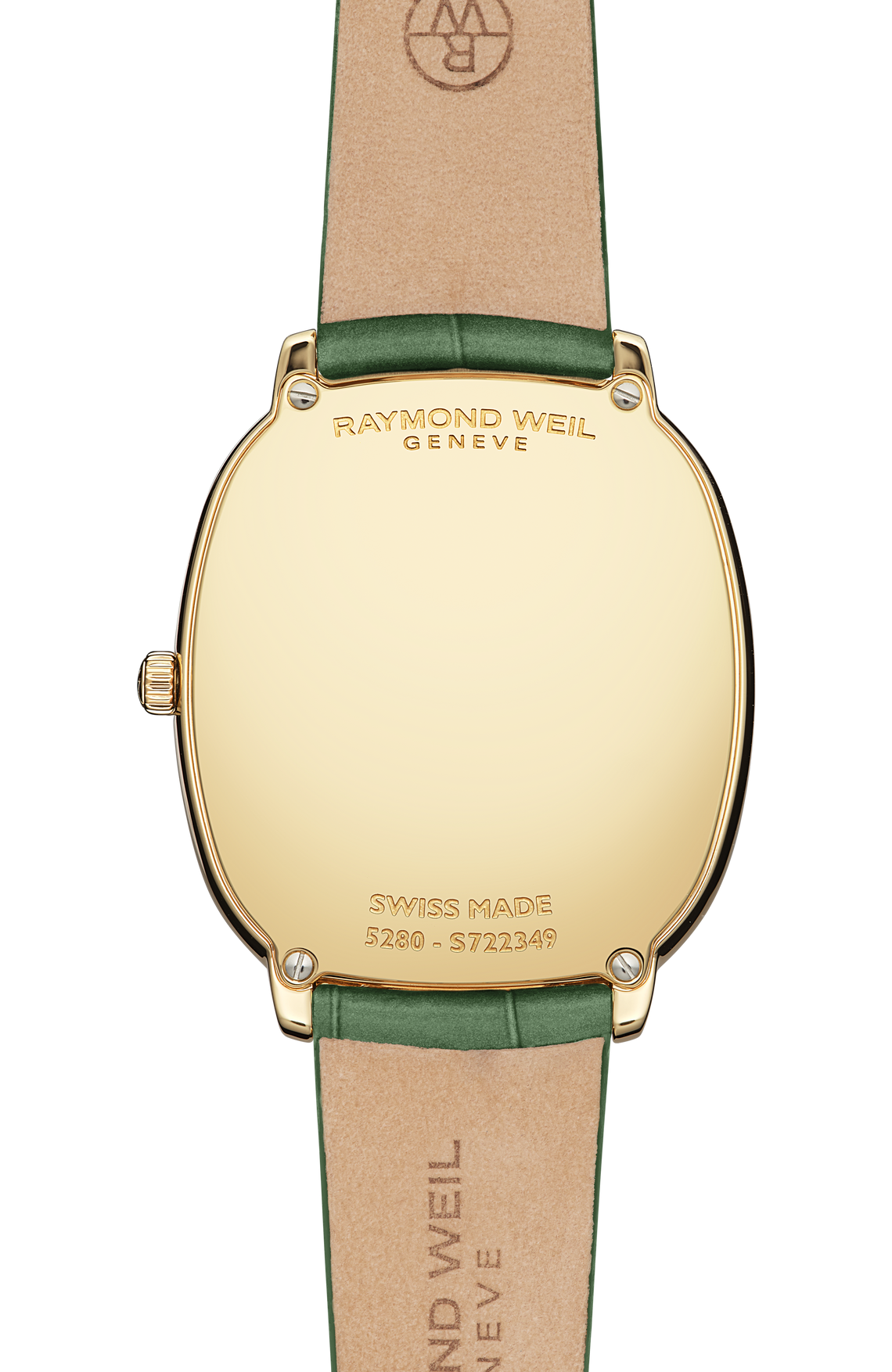Strap: Genuine green calf leather with an alligator motif and a newly designed tongue buckle that mirrors the case's oval shape.