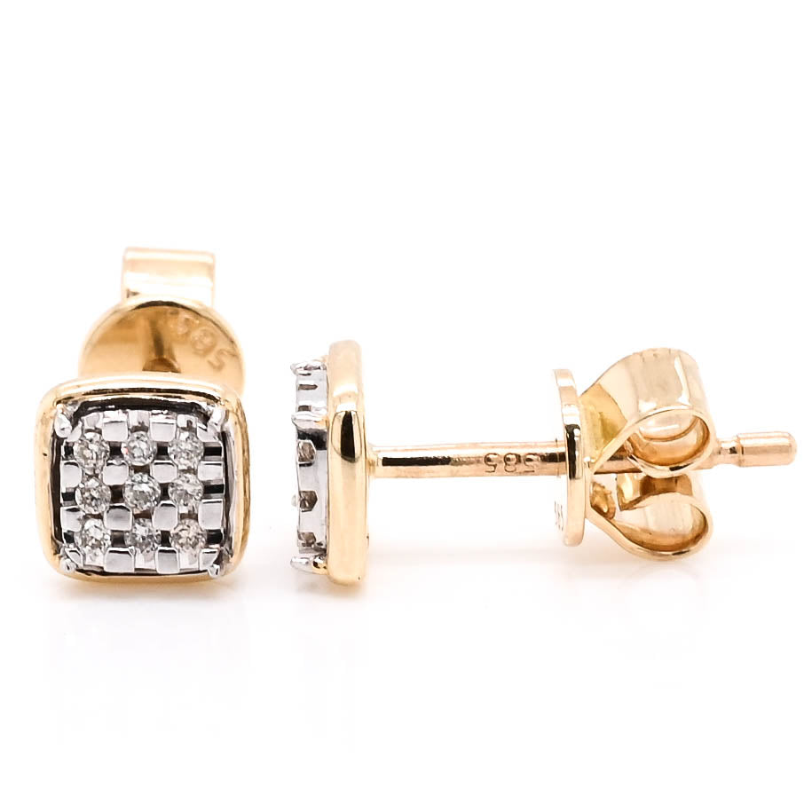 14KT Yellow Gold 0.07CTW CTW Stud Style Backing Diamond Earrings