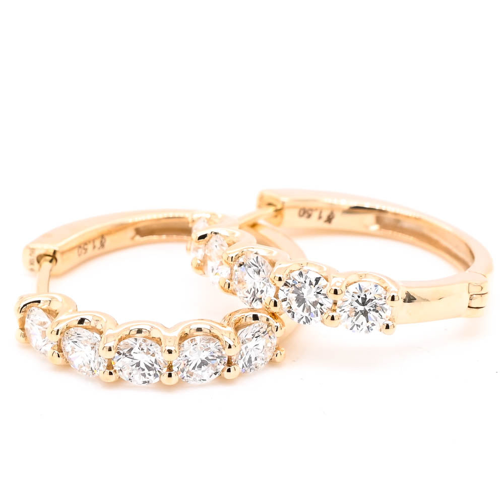 10KT Yellow Gold 1.50CTW LAB Created Diamond Huggie Earrings.