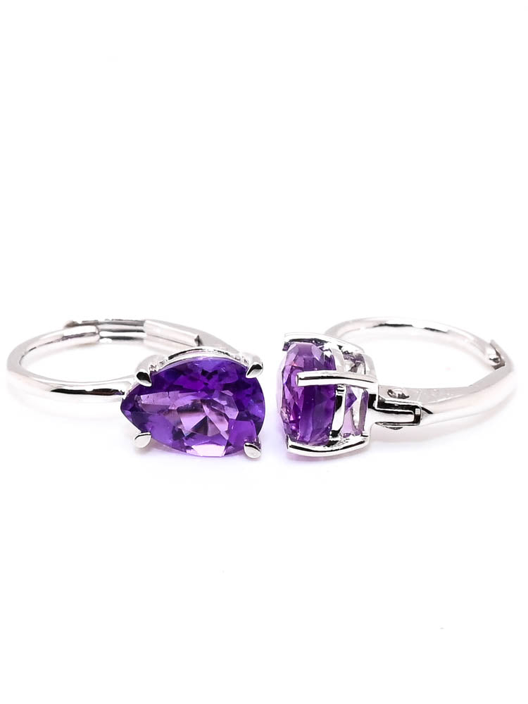10KT White Gold 1.30CT Pear Shape Amethyst Lever Back Earrings.