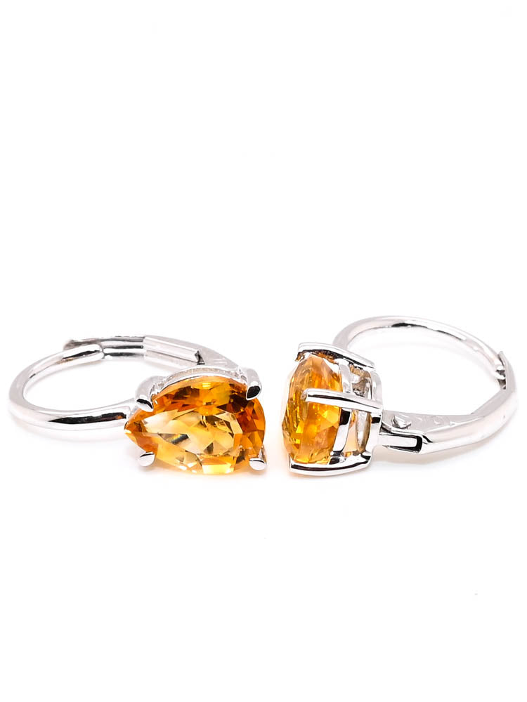 10KT White Gold 1.30CT Pear Shape citrine Lever Back Earrings.
