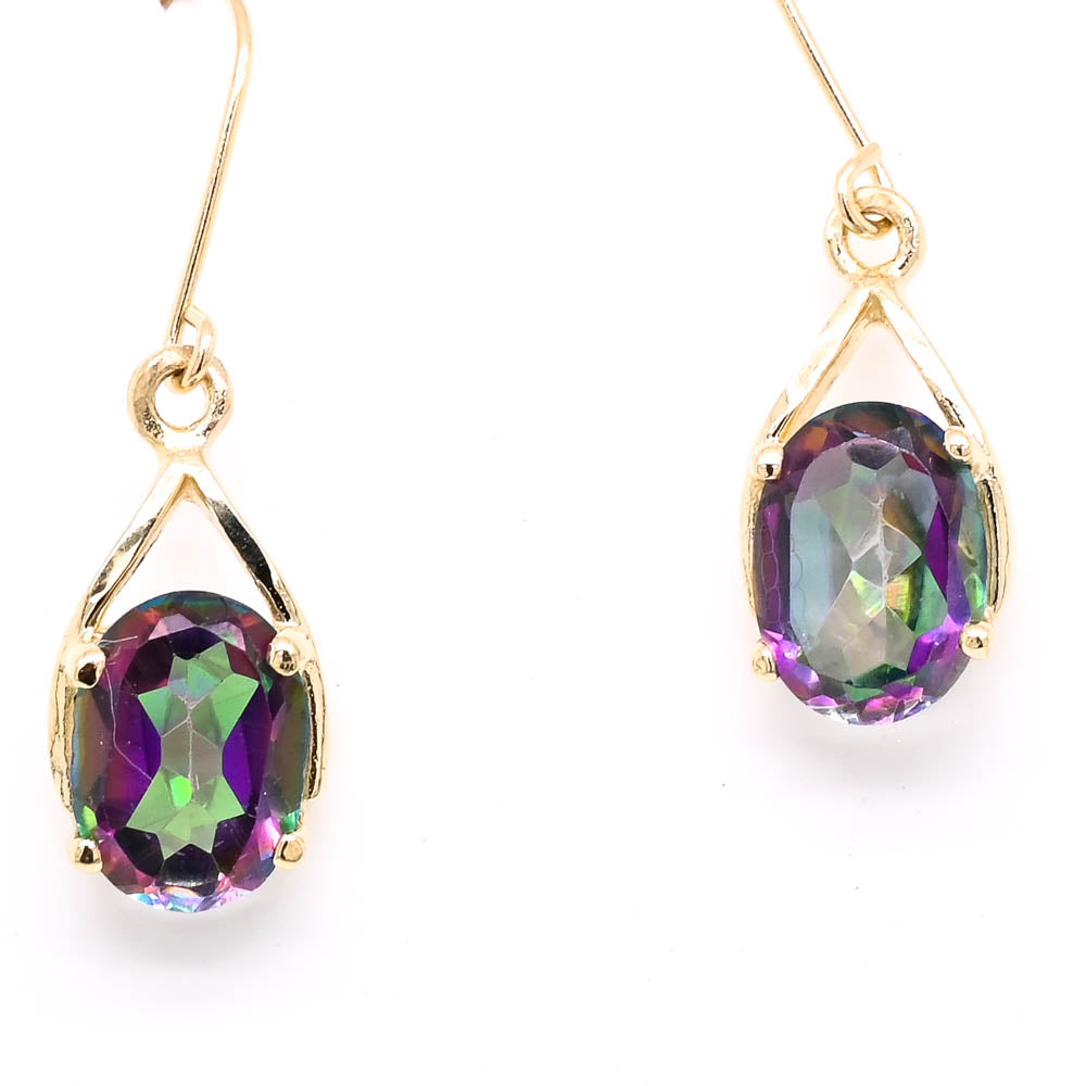 10KT Yellow Gold Mystic Topaz Drop Earrings.