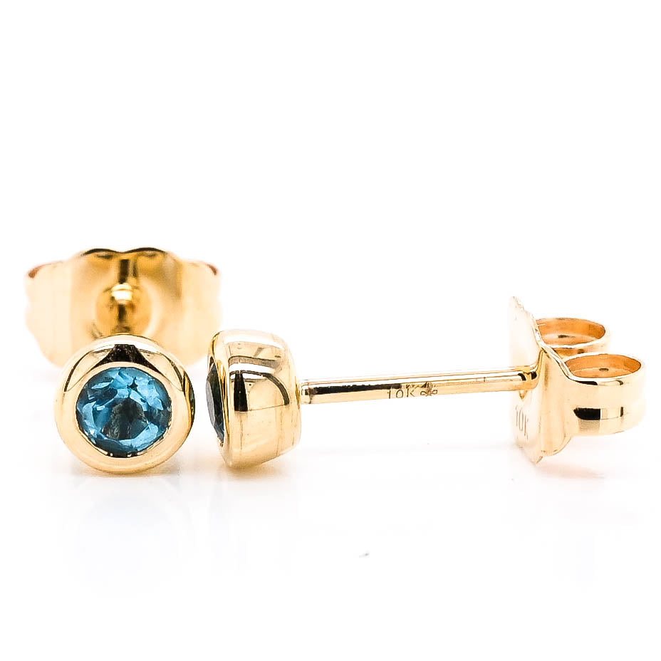 14KT Yellow Gold Blue Topaz Stud Earrings.