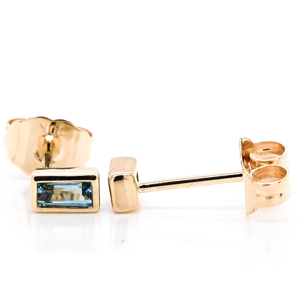 10KT Yellow Gold 0.20CT Baguette Blue Topaz Bezel Set Stud Earrings.