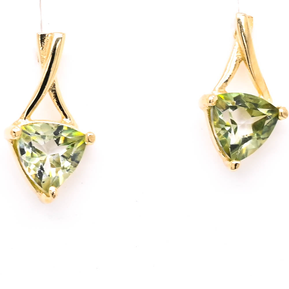 10KT Yellow Gold Green Topaz Stud Earrings.