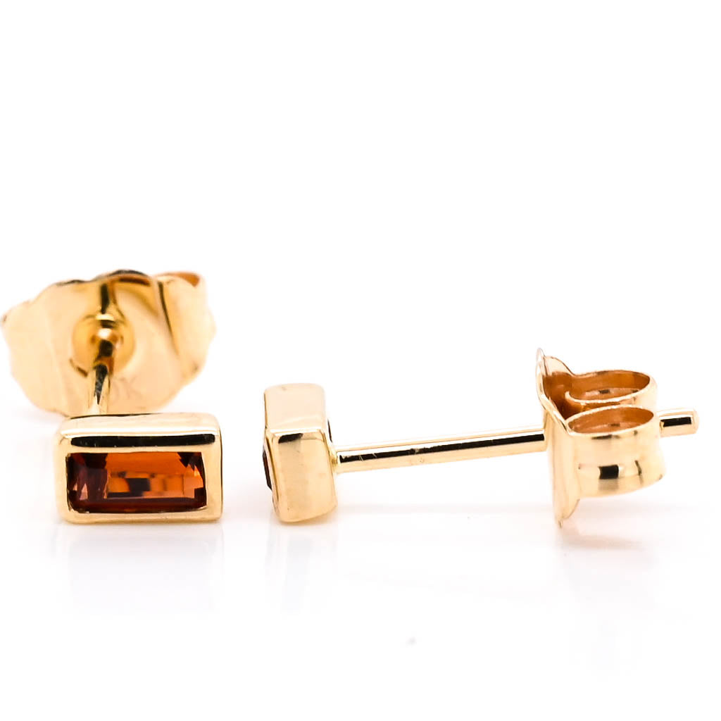 10KT Yellow Gold 0.20CT Baguette Garnet Bezel Set Stud Earrings.