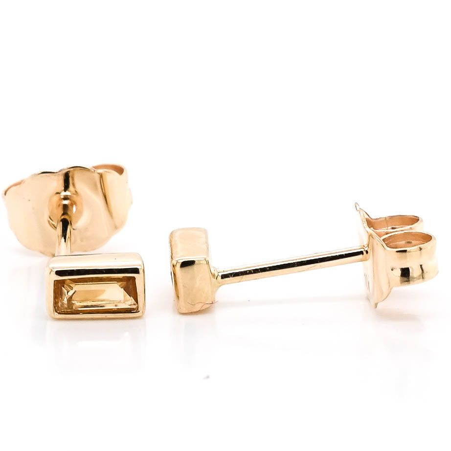 10KT Yellow Gold 0.20CT Baguette Citrine Bezel Set Stud Earrings.