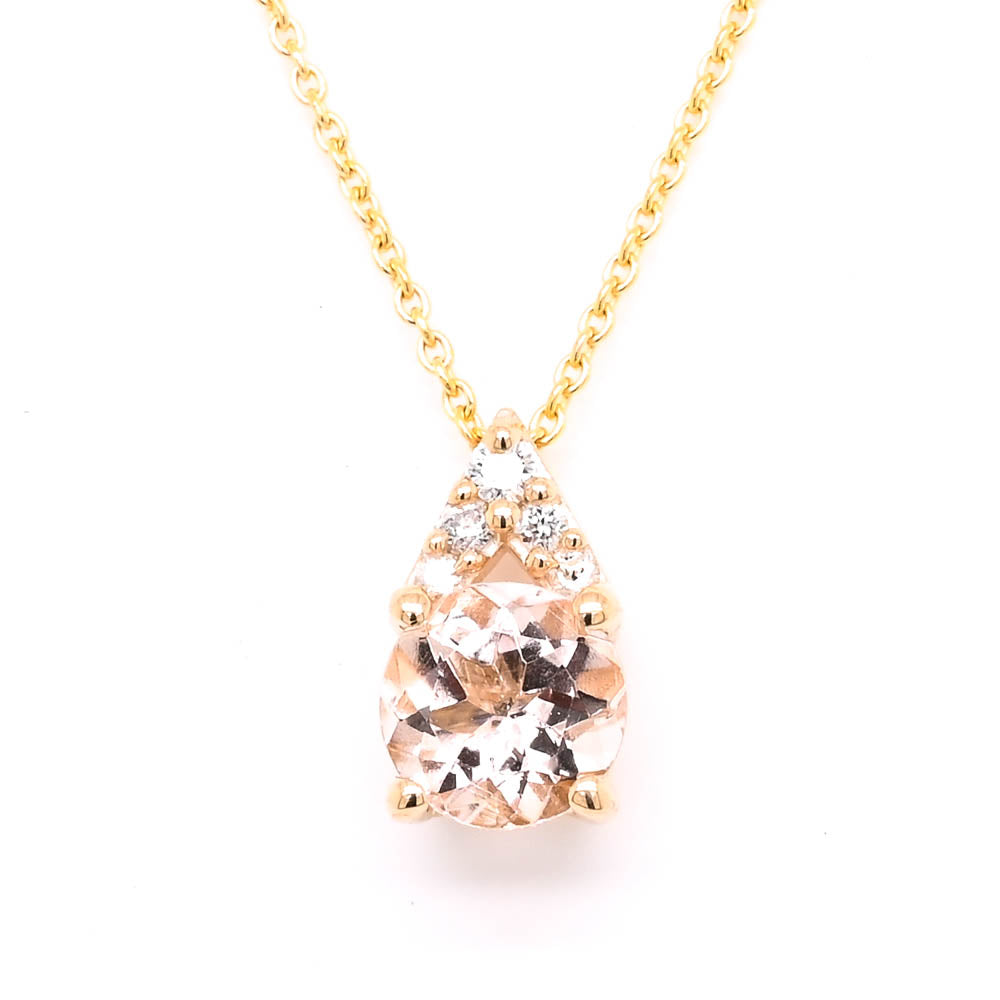 Fire & Ice 10KT Yellow Gold 18" 0.85CT Morganite & Canadian Diamnd Necklace.