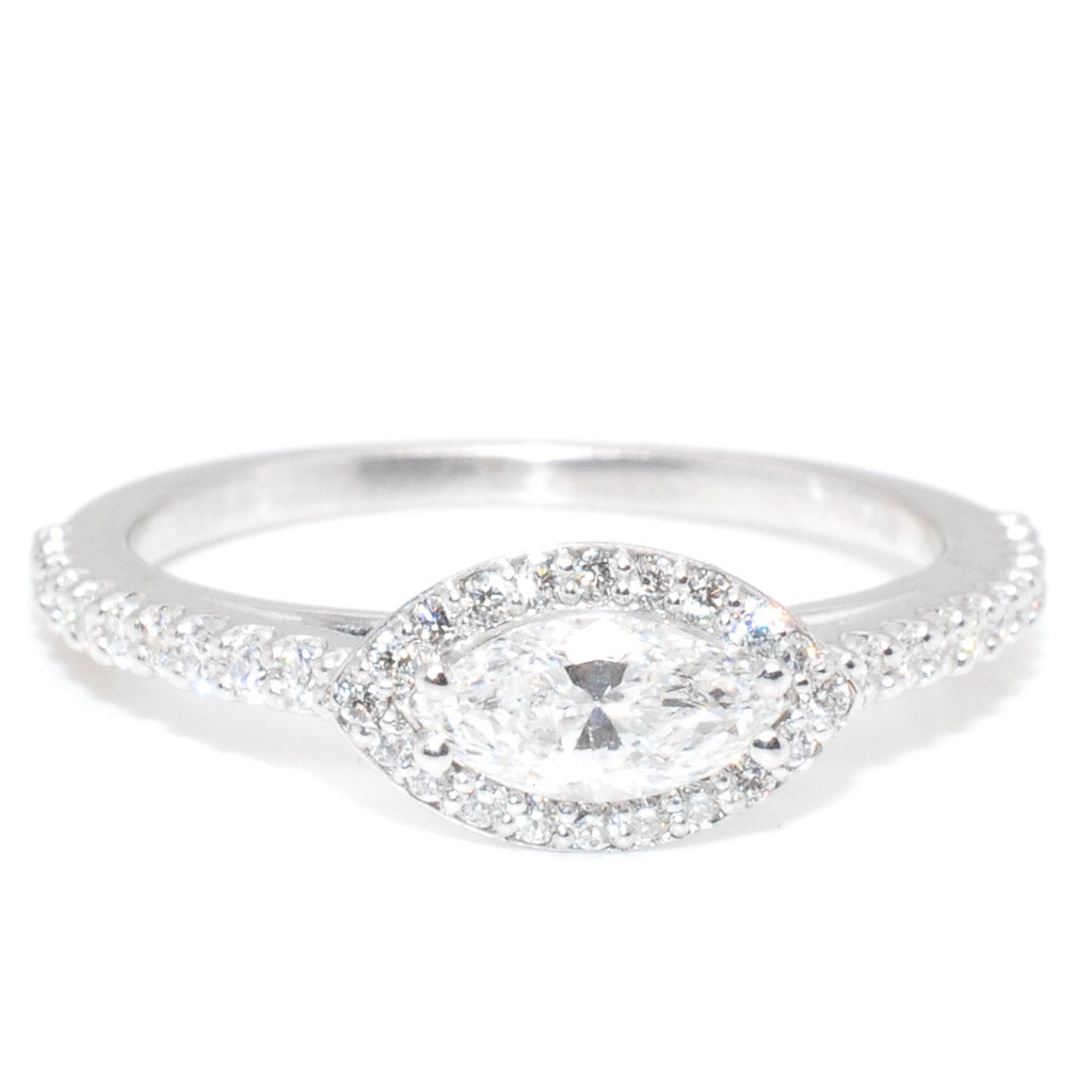 14KT White Gold 0.76CTW Marquise Shape Halo Set Diamond Ring.