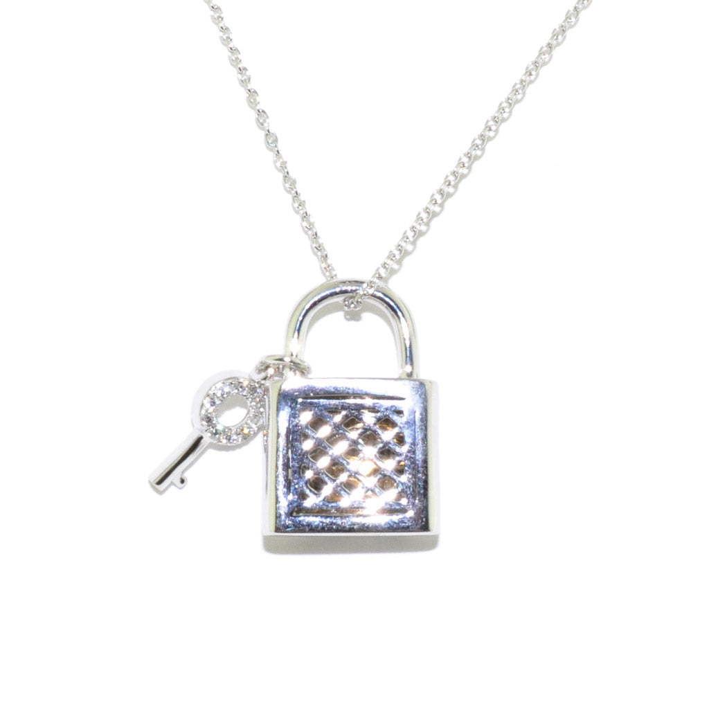14KT White Gold 18" 0.05CTW Diamond Lock and Key Necklace.