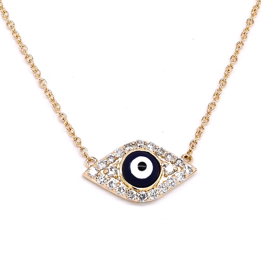 14KT Yellow Gold 18" 0.18CTW Diamond Evil eye Necklace.