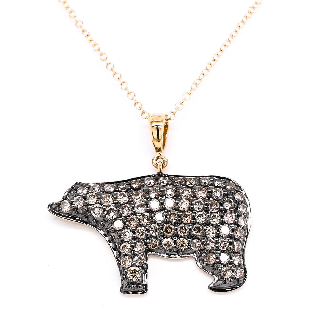 10KT Yellow Gold 18" 0.65CTW Chocolate Diamond Polar Bear Necklace.