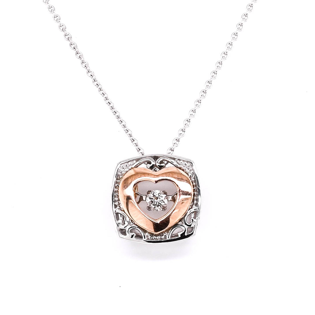 Fire and Ice 10KT White Rose Gold 18" 0.05CT Canadian Diamond Heart Necklace.