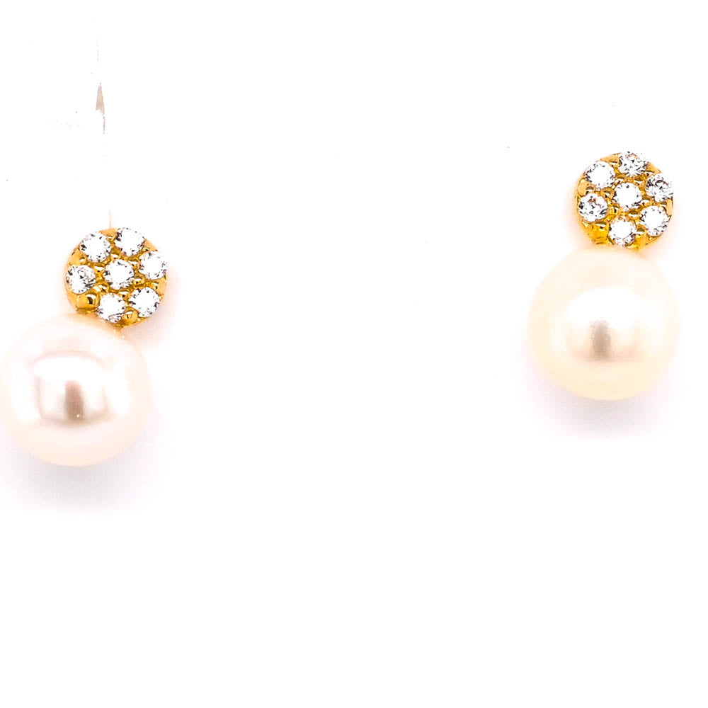 18KT Yellow Gold 7-7.5mm Pearl & C.Z Stud Earrings.