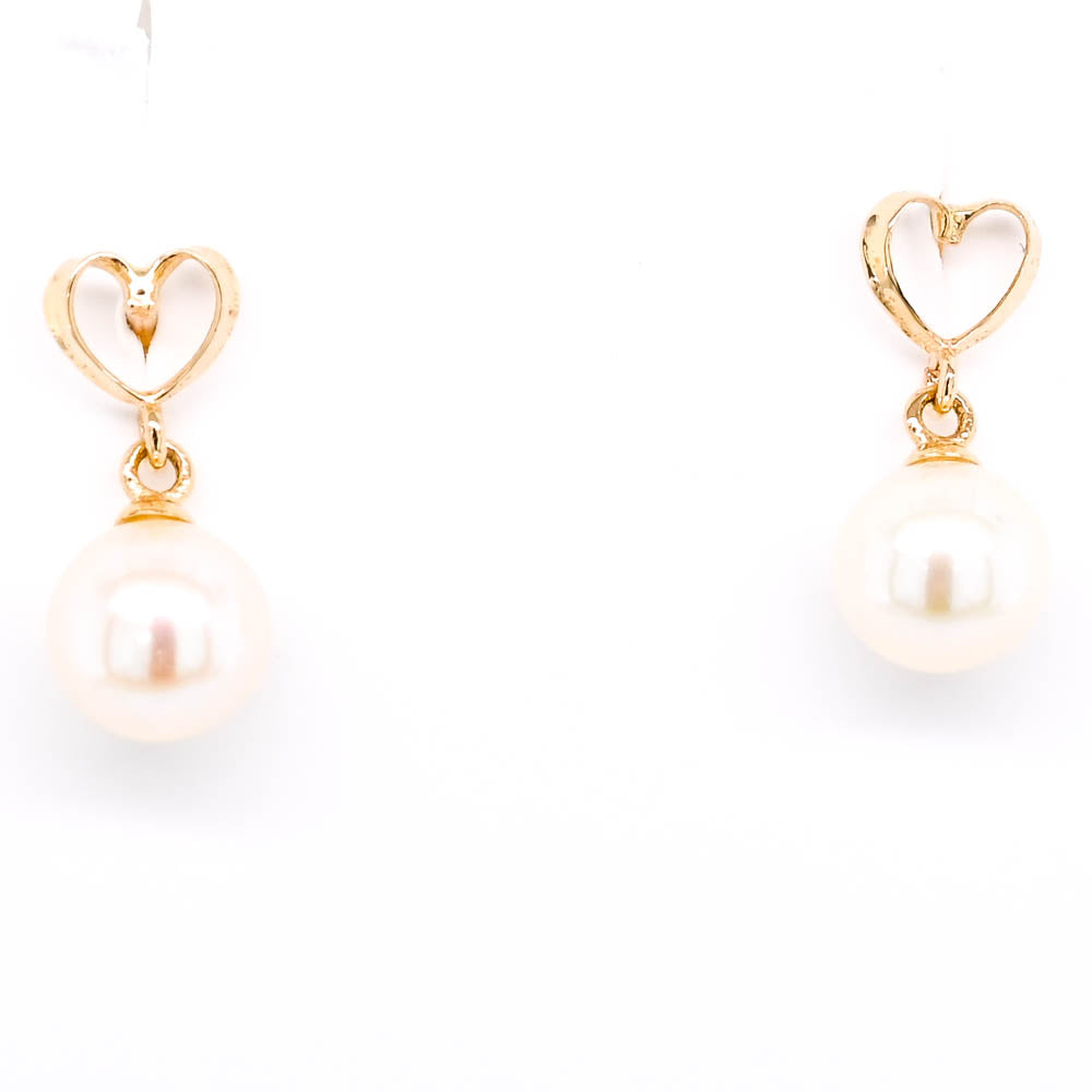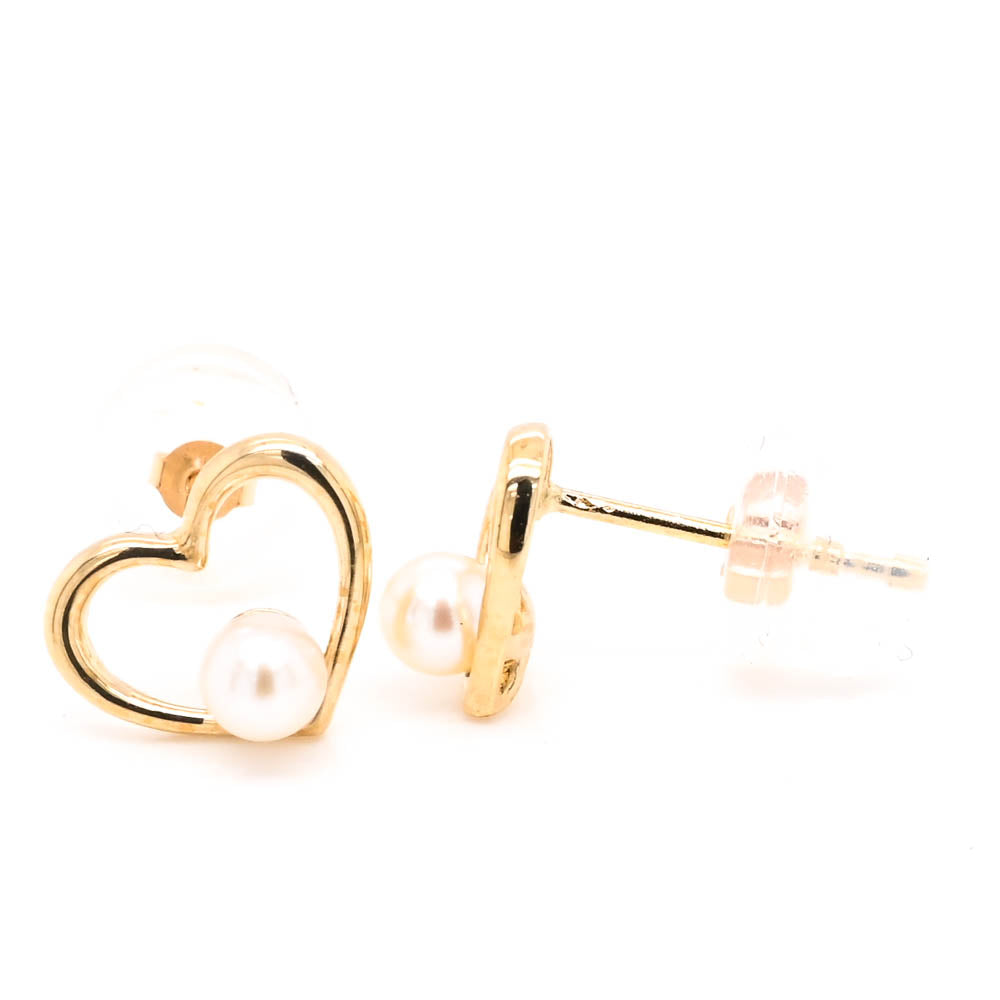 10KT Yellow Gold 2mm Freshwater Pearl Stud Heart Earrings.