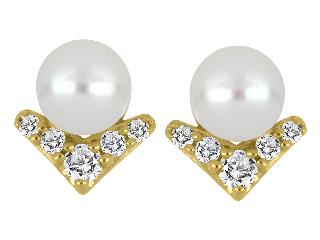 10KT Yellow Gold 4mm Pearl & C.Z Earrings.