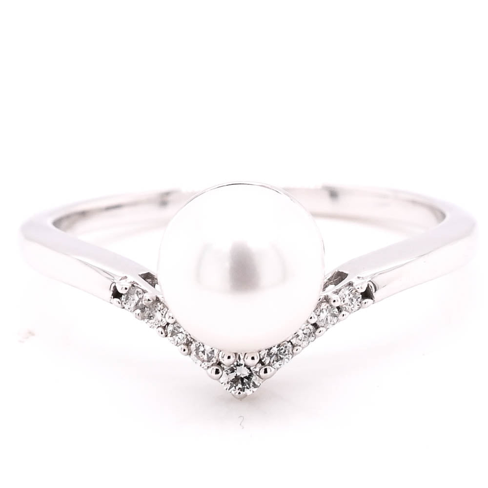 Fire & Ice 10KT Yellow Gold 6.5-7mm Peal & Canadian Diamond Ring.
