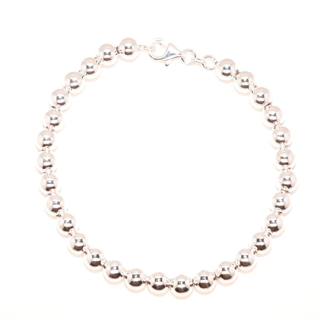 Sterling Silver 8" 6MM Bead Bracelet.