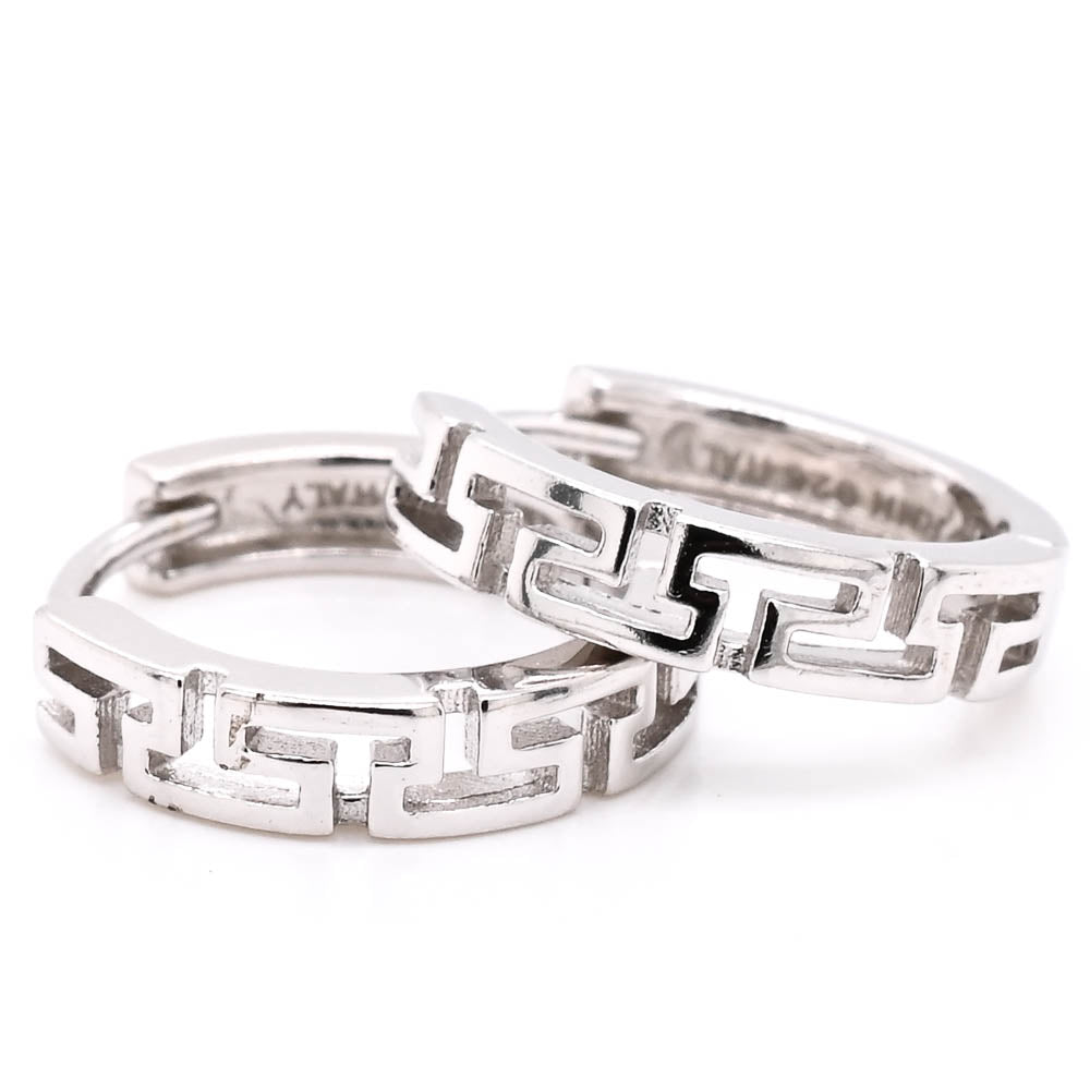 Sterling Silver 14mm Greek Key Huggie Earrings.