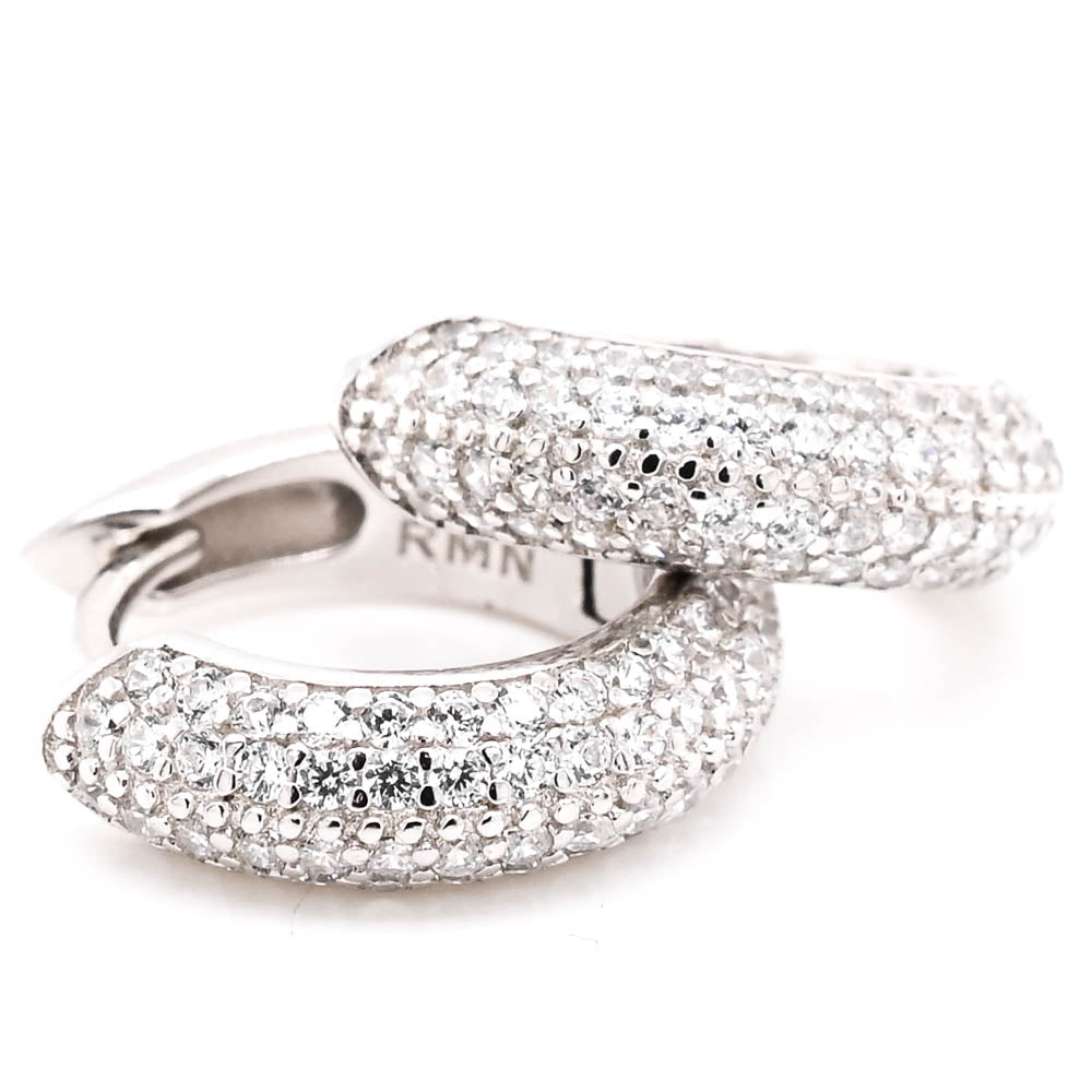 Sterling Silver 15mm Pave Set C.z Huggies Earrings.