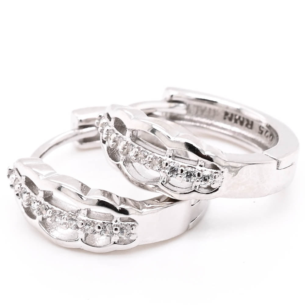 Sterling Silver 16x10mm C.Z Huggie Earrings.