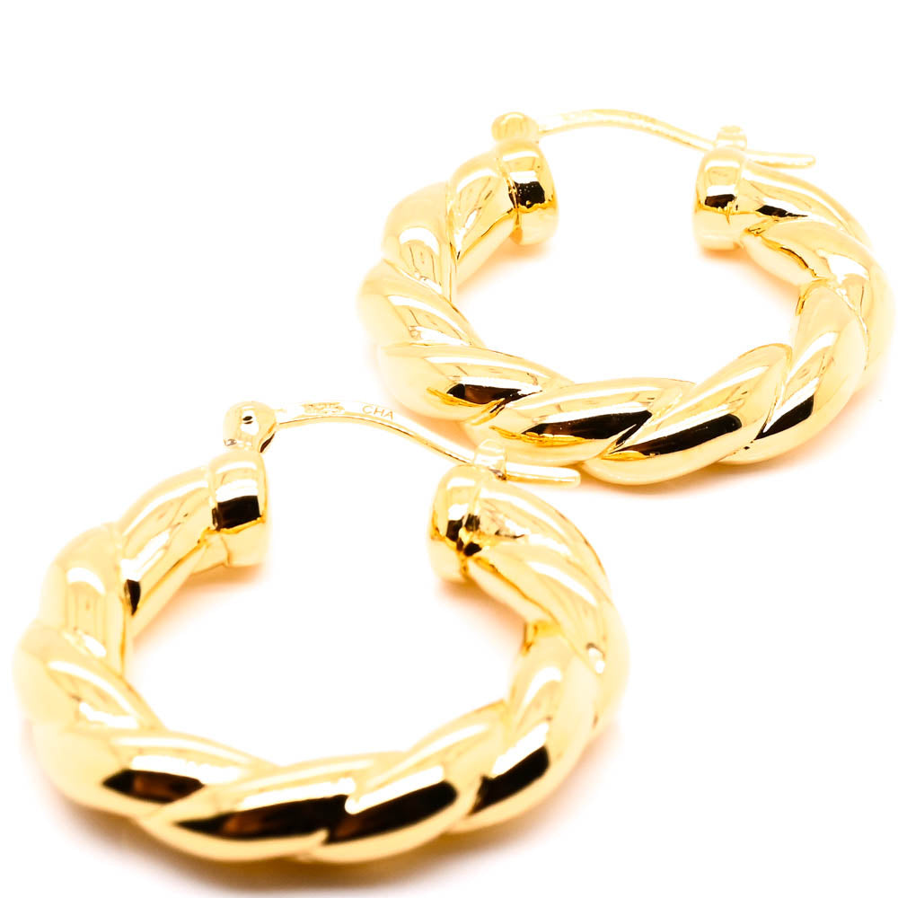 Sterling Silver Gold Plated 30mm Hoop Earrings.