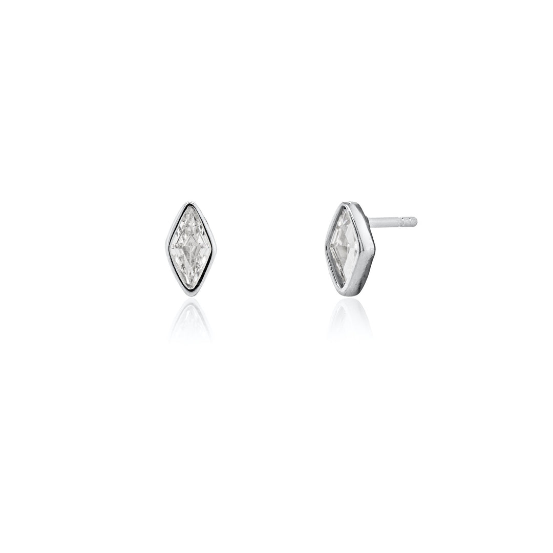 Sterling Siver Bevel Set CZ Marquise Stud Earrings.