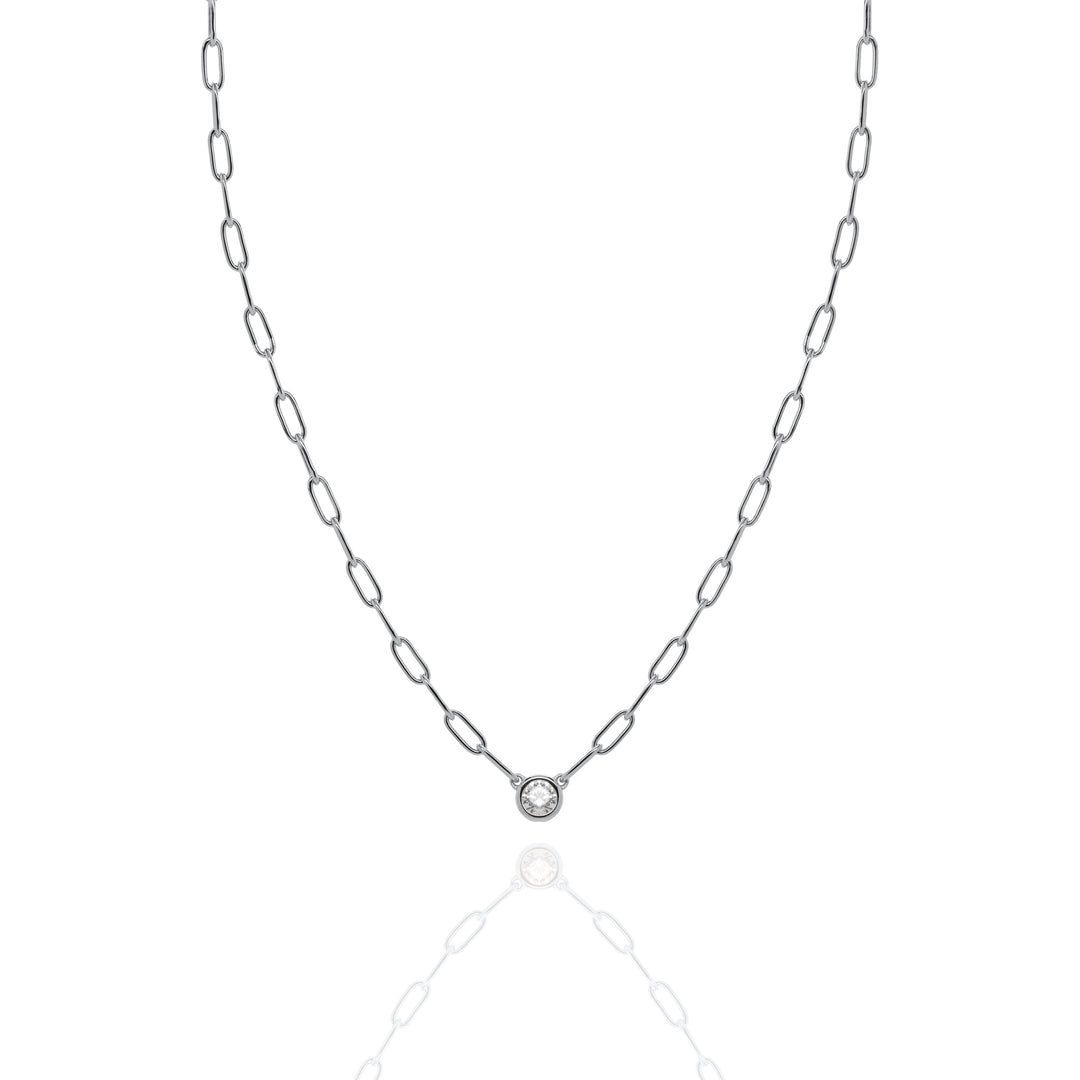Sterling Silver 18" 5.3mm Bezel Set Round CZ Paperclip Necklace