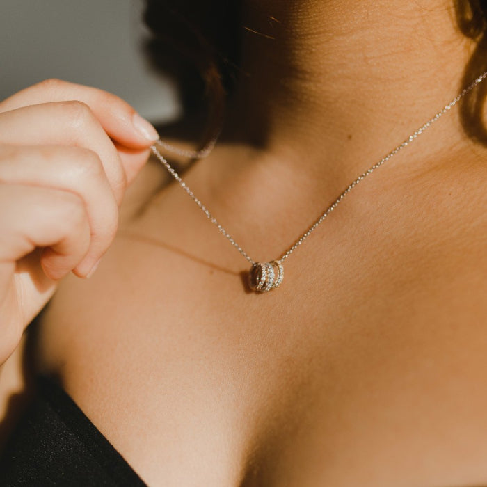 Graziella Sterling Silver 18" Rhodium Plated CZ Tri Colour Necklace.