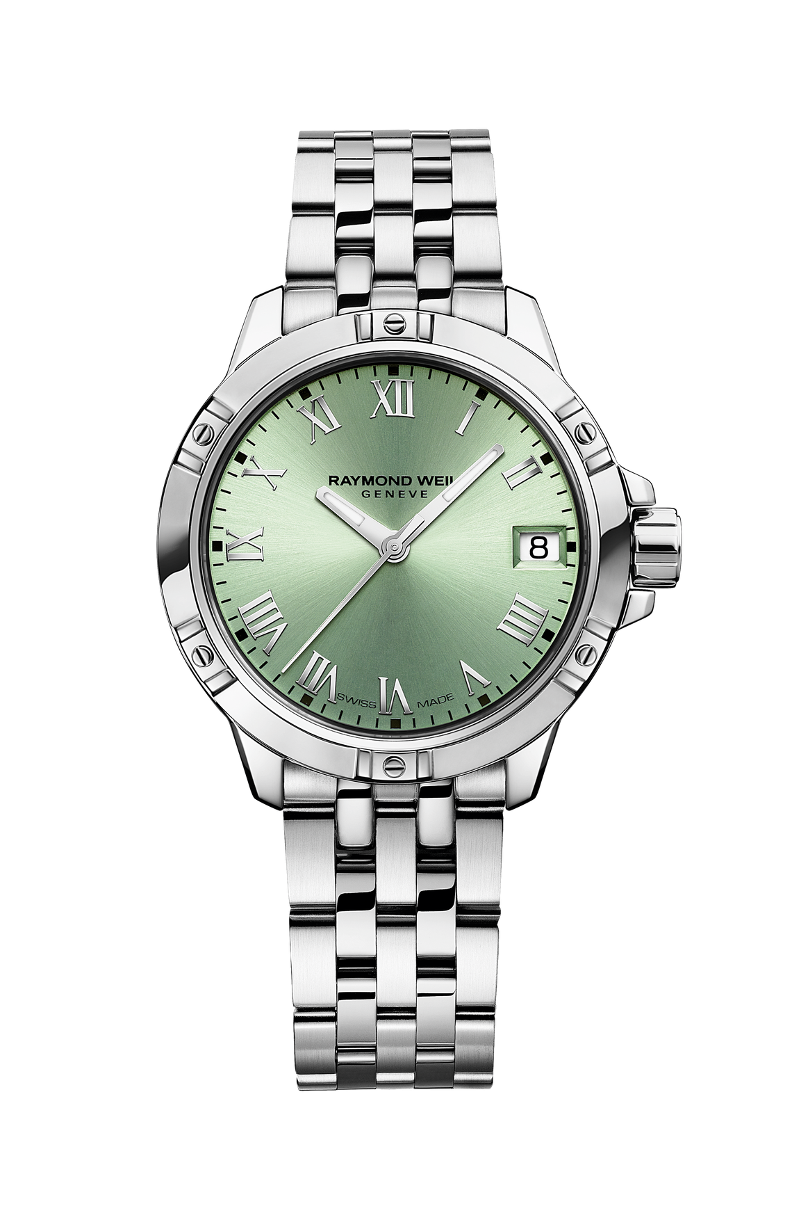 Raymond Weil Tango Classic Quartz Green Dial Steel Date 30mm Watch. 5960-ST-00520