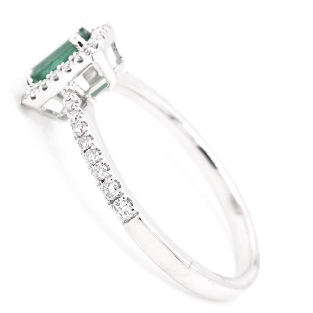 14KT White Gold 0.24CT Emerald  Halo Set Diamond Ring.