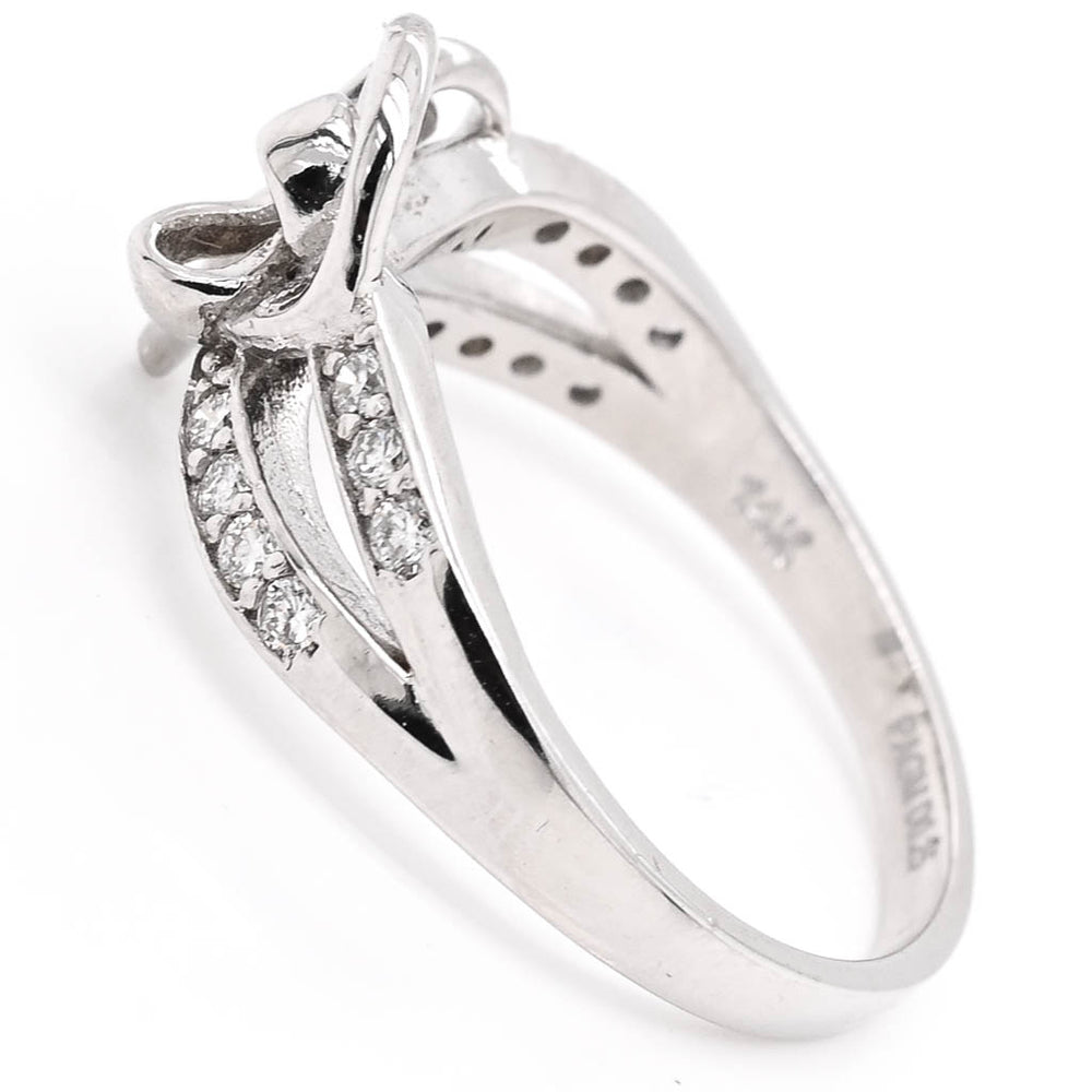 14KT White Gold 0.25CTW Diamond Heart Bow Ring.