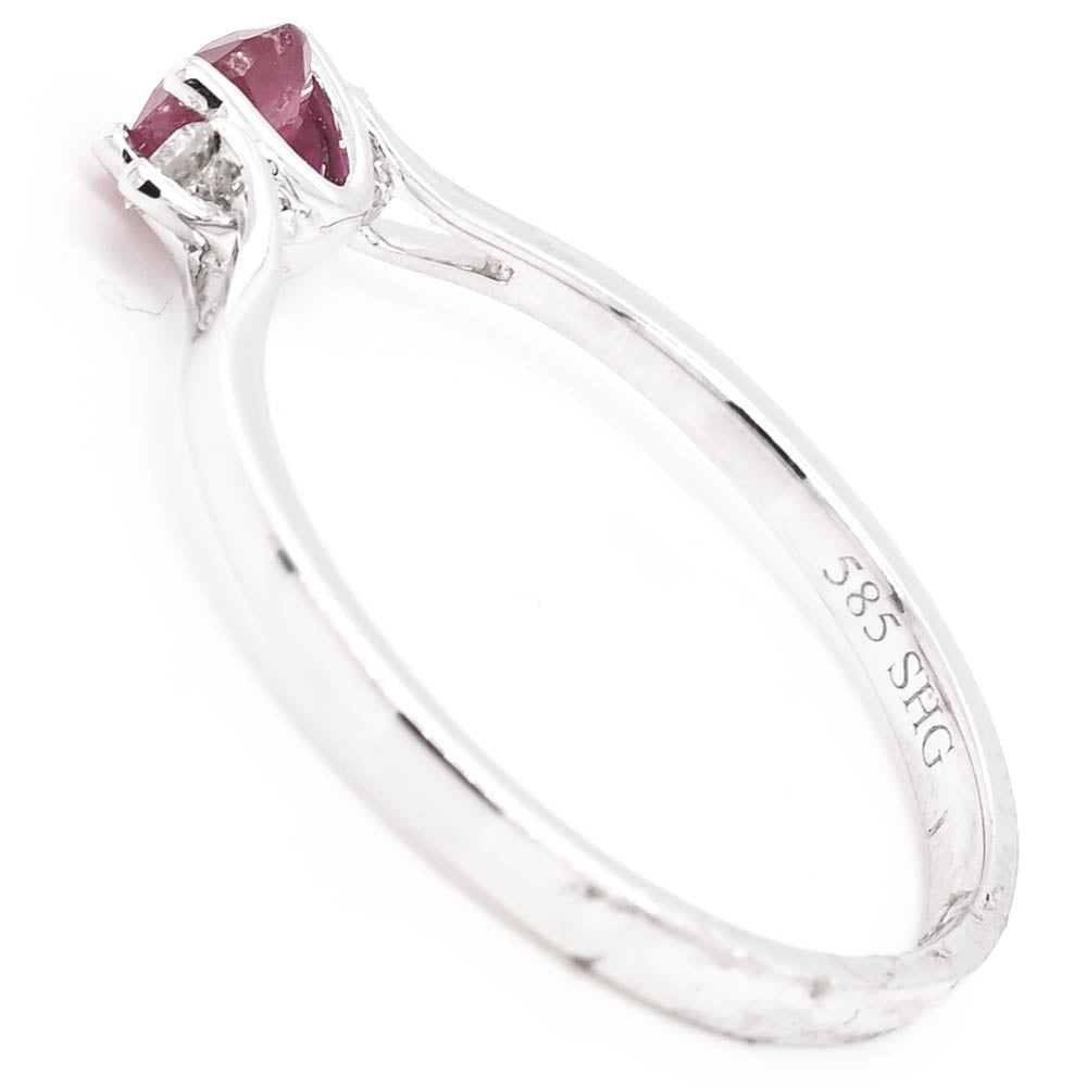 14KT White Gold 0.38CT Round Shape Ruby and Diamond Ring.