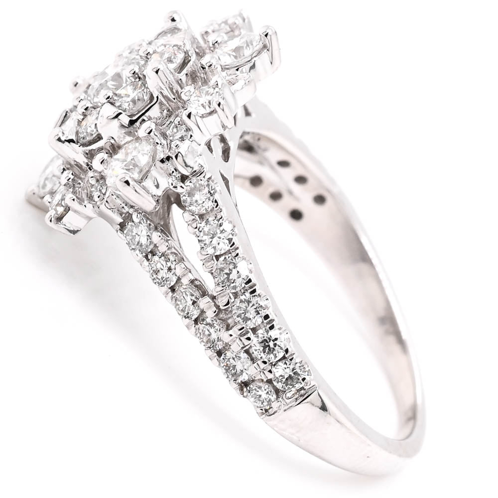 14KT White Gold 1.00CTW Diamond Cluster Ring.