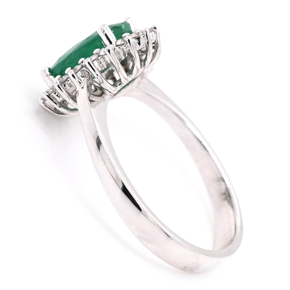 14KT White Gold 1.44CT Oval Shape Emerald & Diamond Cluster Ring.