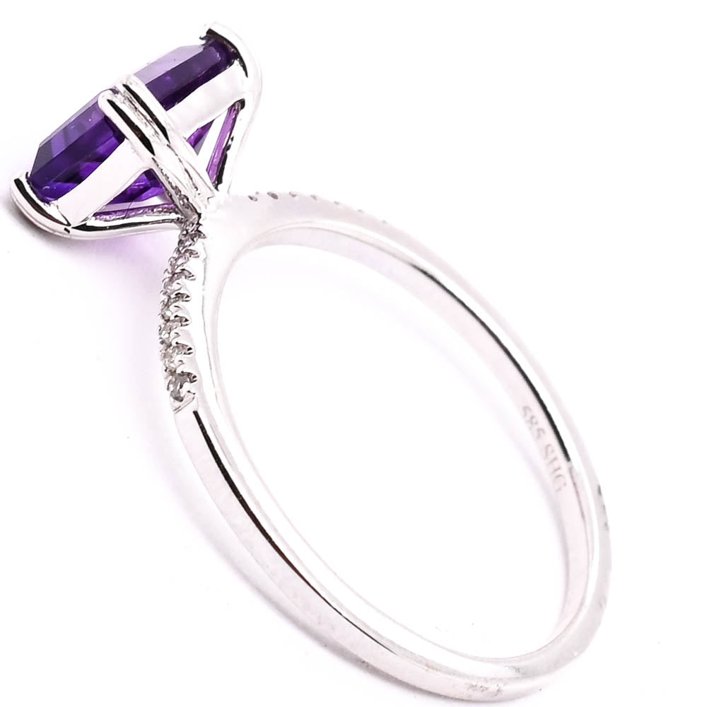 14KT White Gold 1.75CT Emerald Shape Amethyst & Diamond Ring.