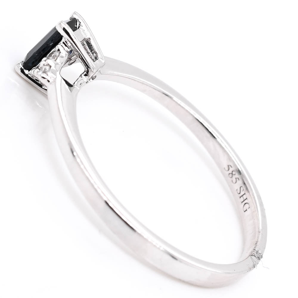 14KT Whited Gold 0.37CT Emerald Shape Blue Sapphire and Diamond Ring