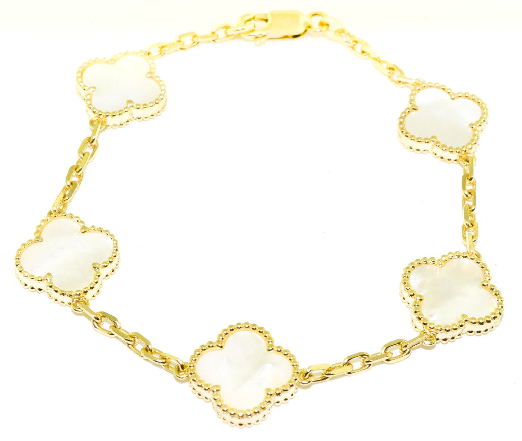 10KT Yellow Gold 8" Mother of Pearl Flower Bracelet.