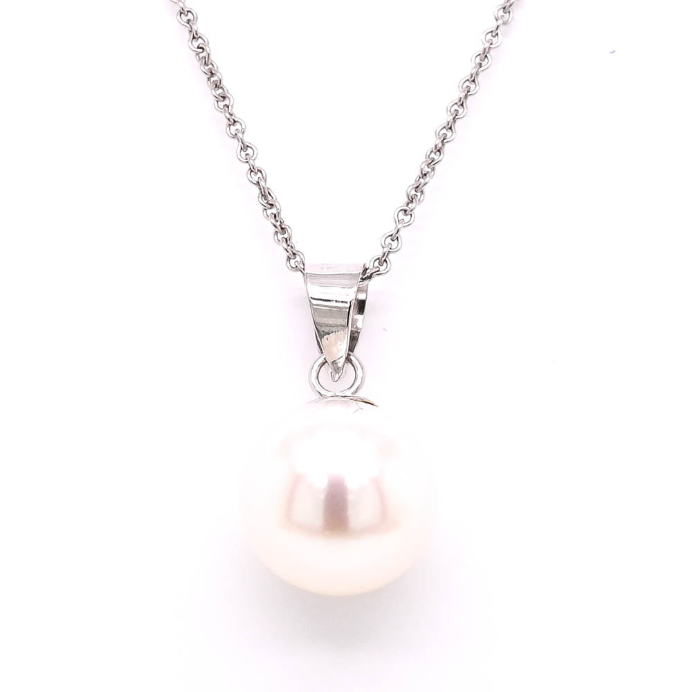14KT White Gold 18" 9.7MM Cultured Pearl Necklace.