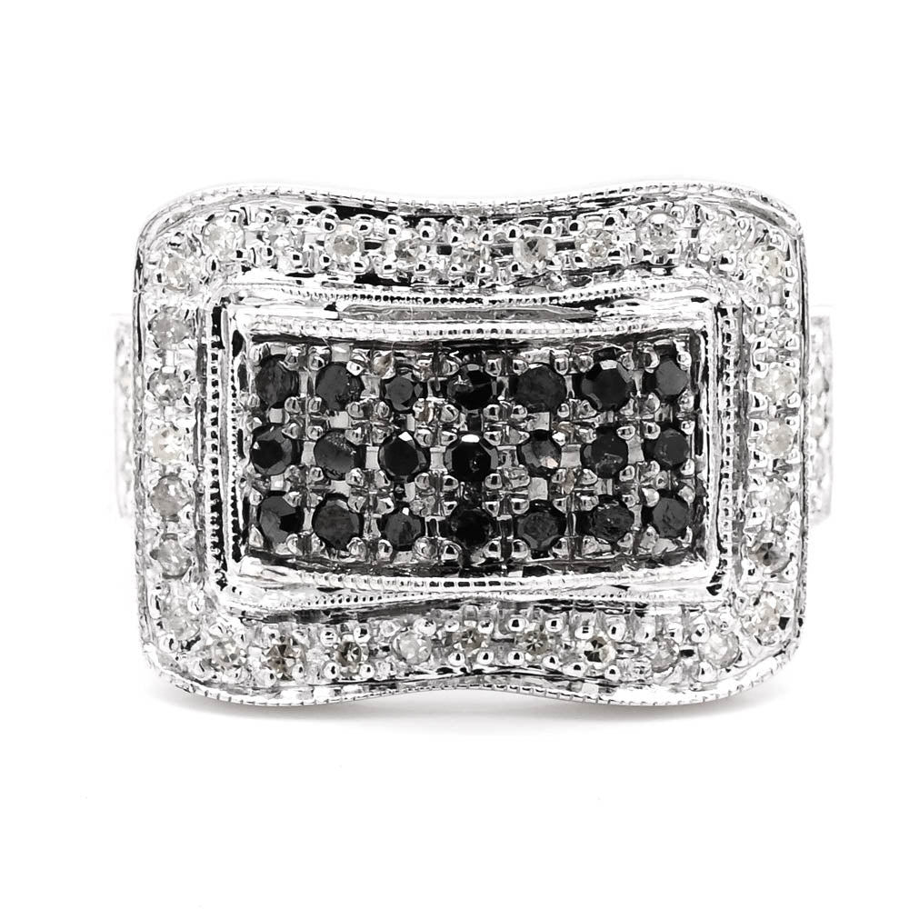 14KT White Gold Black & White Diamond Pave Set Celebration Ring.