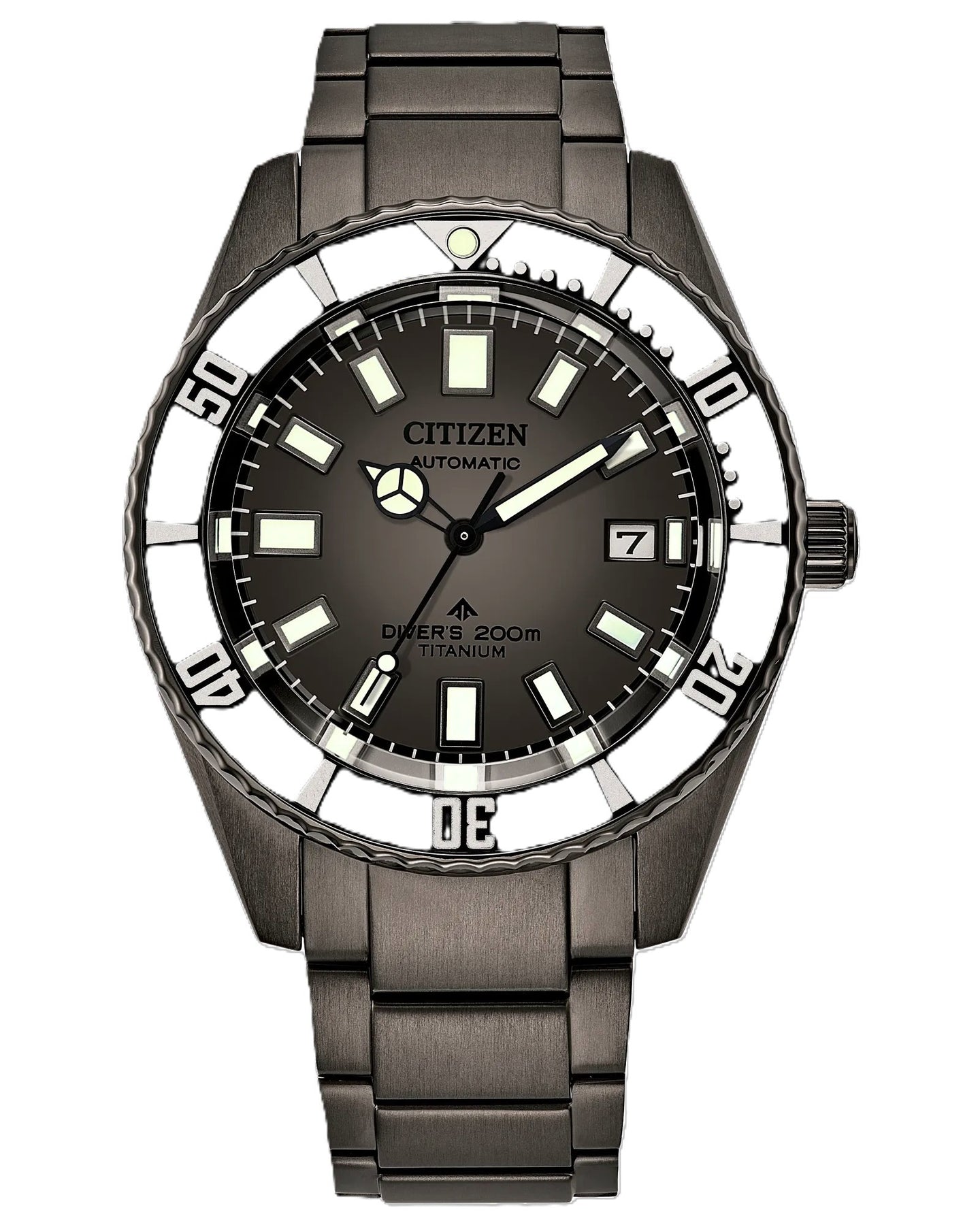 The NB6025-59H is a high-tech reimagining of Citizen’s heritage, combining a vintage 1970s silhouette with the brand’s most durable modern materials. It is a "true" diver, built to ISO 6425 standards, but executed in Black DLC (Diamond-Like Carbon) Super Titanium. This makes the watch incredibly light (just 111g) and virtually scratch-proof. The graduated grey dial (fading from light to dark) gives it a moody, sophisticated look that separates it from the standard blue or black versions of the Fujitsubo.