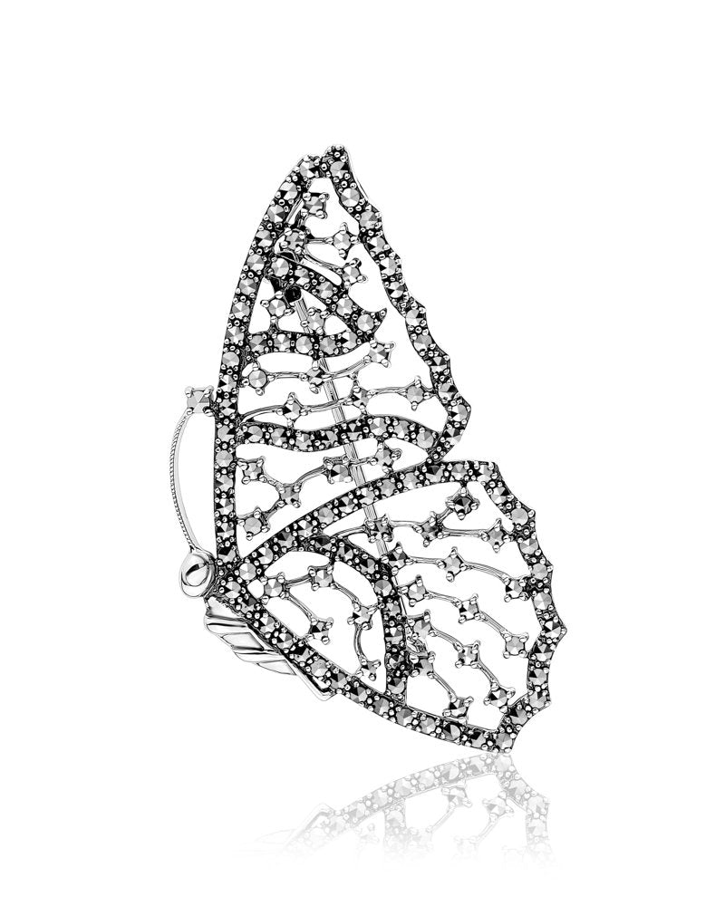 Larus Sterling Silver Marcasite Butterfly Wing Brooch.