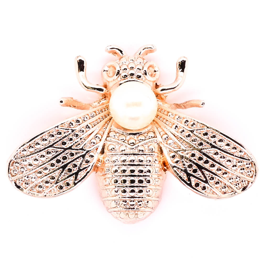 Pink Tone Metal Pearl Bead Bee Magnetic Brooch.