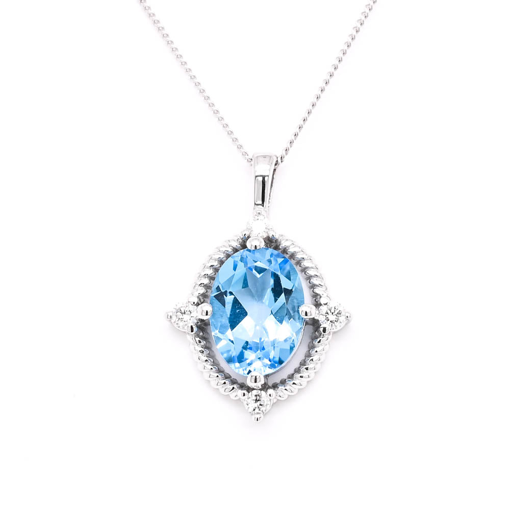 Fire & Ice 10KT White Gold 18" Oval Shape Blue Topaz & Canadian Diamond Necklace.