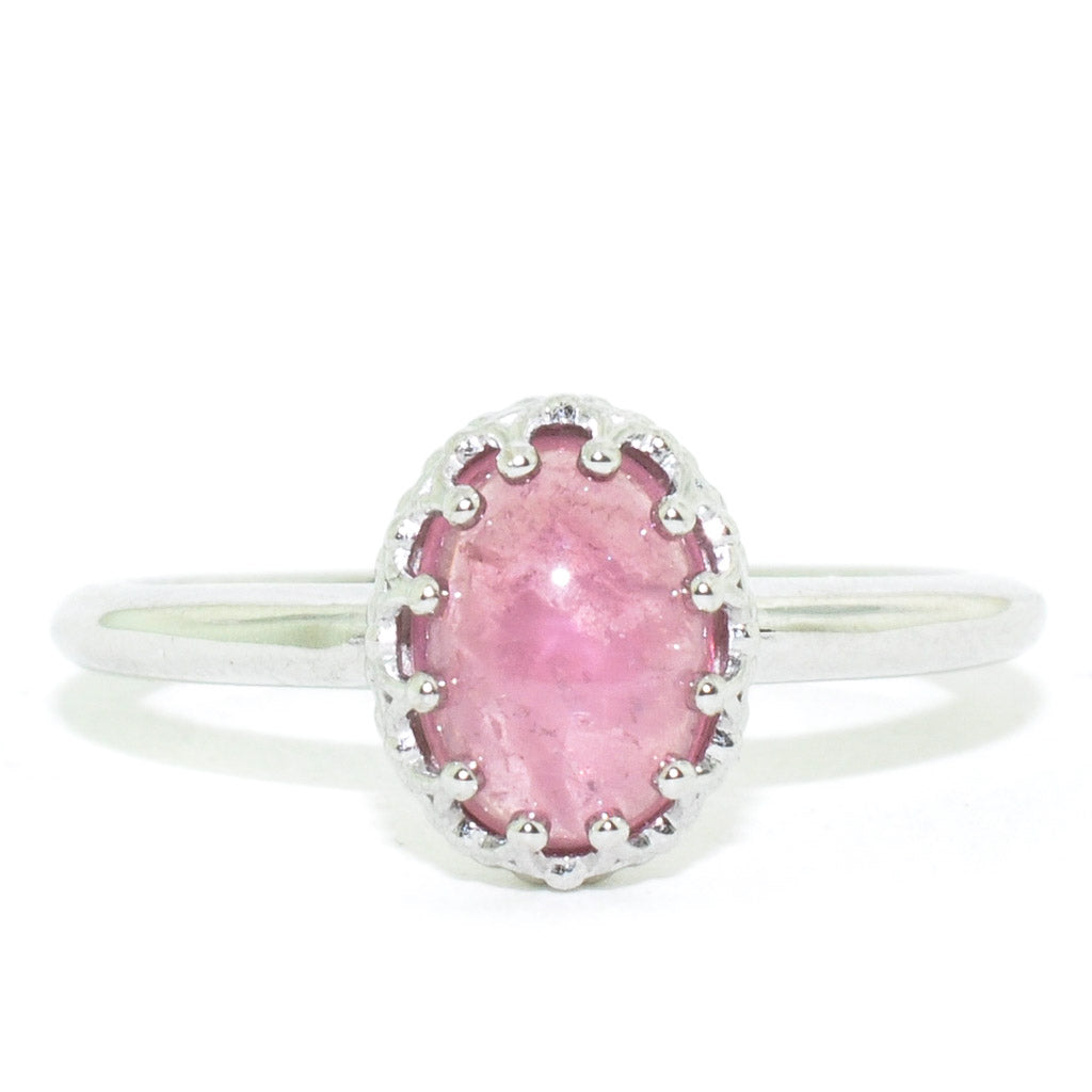 10KT White Gold 1.47CT Cabochon Pink Tourmaline Ring.