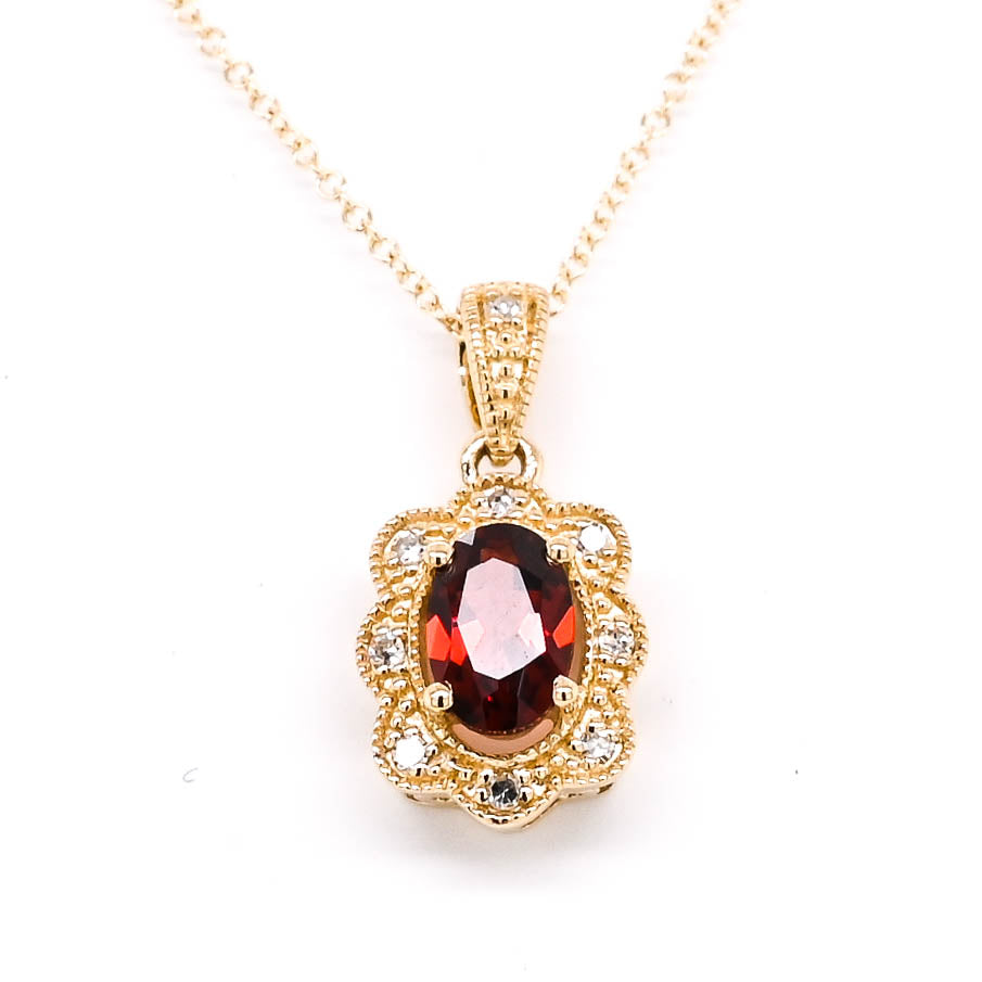 10KT Yellow Gold 18" 0.50CT Oval Shape Garnet & Diamond Necklace.