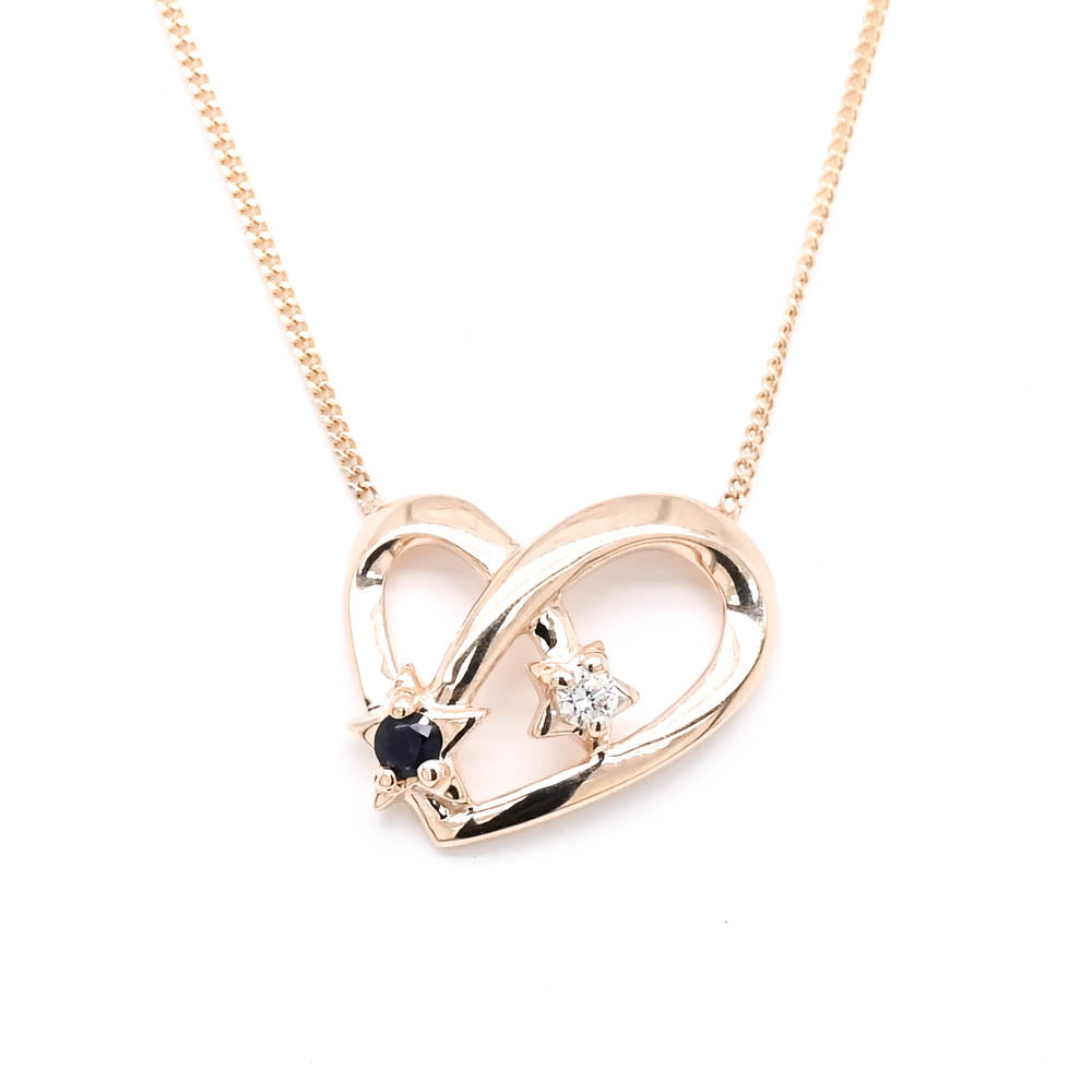 Fire & Ice 10KT Yellow Gold 18" Blue Sapphire & Canadian Diamond Heart Necklace.